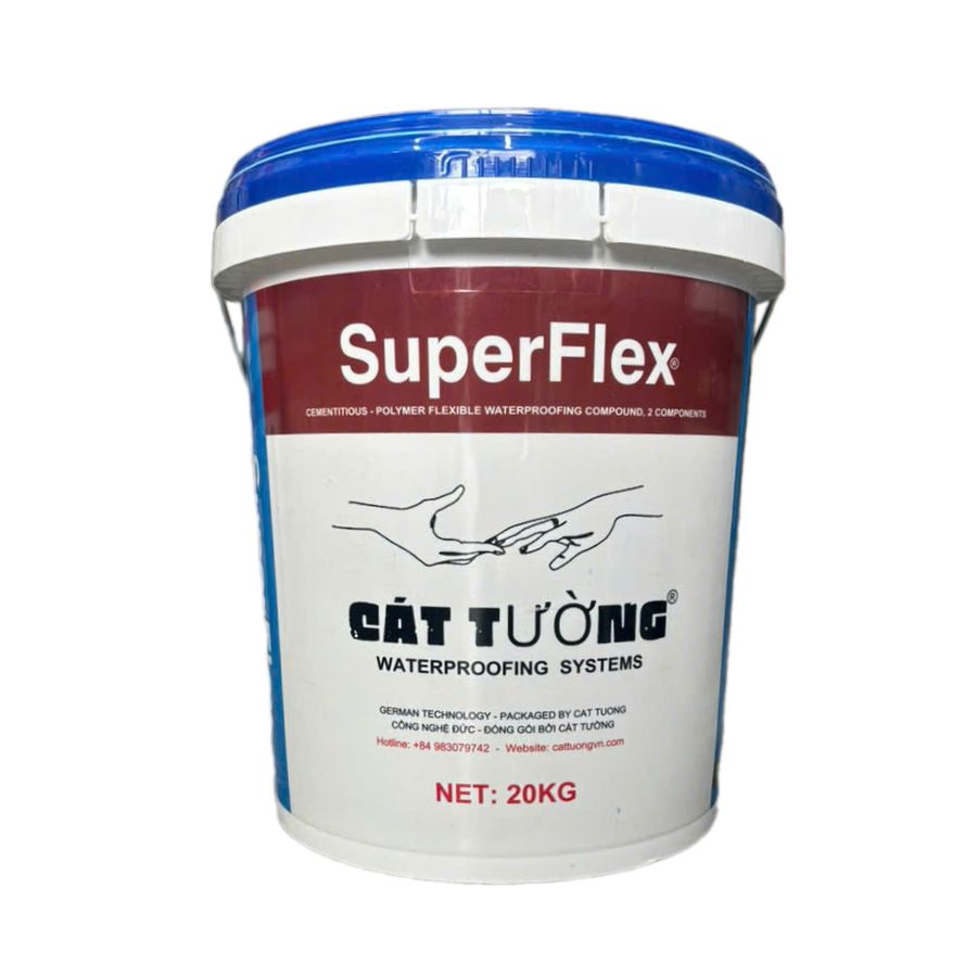 Superflex là loại vật liệu chống thấm 2 thành phần gốc xi măng, kết hợp giữa thành phần A là chất lỏng polymer và thành phần B là bột xi măng đặc biệt. Tạo ra lớp màng chống thấm có độ bền cao, chịu đựng điều kiện khắc nghiệt của môi trường, đặc biệt thích hợp cho việc chống thấm sân thượng, chống thấm sàn mái
